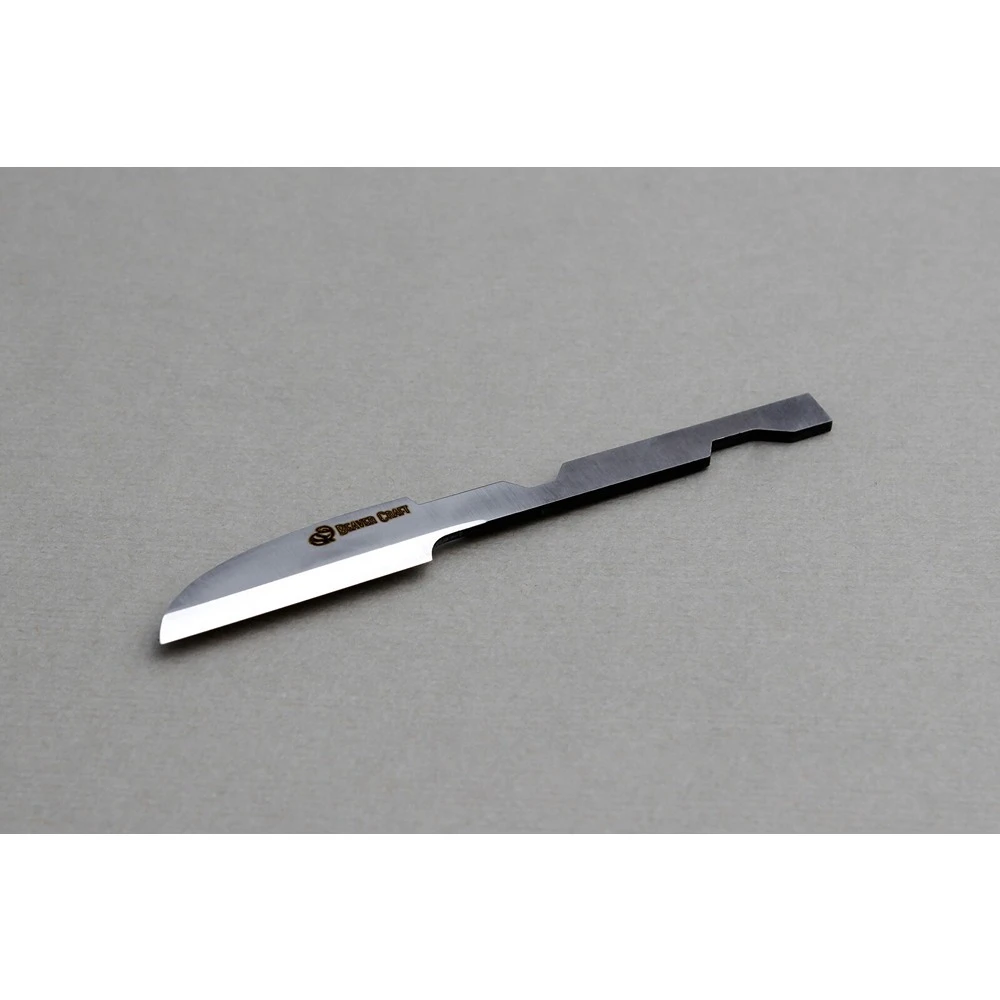 This straight blade is designed for the heavier stock removal with a rounded durable point. Being super sharp, the blade allows cutting both soft and hardwood. The blade features high carbon steel.