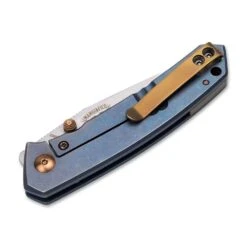Joe Mangiafico’s modern and striking interpretation of the classic canoe knife design convinces with a ball bearing drop point blade of CPM-S35VN in a stonewash finish and a blue nuanced titanium handle. Decorative accents are set by the bronze elements such as the blade axle screw, the thumb pin and the titanium clip (tip-up/r). While the historical Canoe knives usually do not have blade locks, the Boker Plus Canoe with the titanium framelock takes a modern approach in keeping with the uncompromising performance for which the knife designer from the USA stands. A lanyard hole and the quality nylon pouch make it complete.