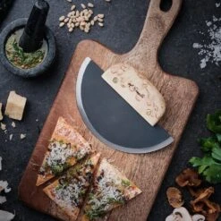 The traditional Ulu chef knife is a versatile universal knife and a handy tool for a skilled chef, where the curved carbon steel blade makes for a rolling motion. Suitable for slicing and cutting – from pizza and meat to vegetables, and even for skinning.