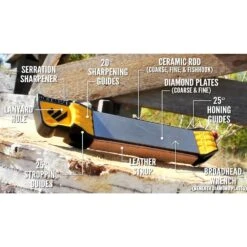 The Work Sharp Guided Field SharpenerĀ is a compact knife sharpener designed specifically for use in the field. Built in 20 degree sharpening guides ensure a consistent bevel angle across the entire length of any blade. 5 abrasive steps provide the complete sharpening solution. The Field Sharpener includes: 1 xĀ Coarse Diamond Plate, 1 xĀ Fine Diamond Plate,Ā 1 xĀ Large Ceramic Rod with 3 Positions (coarse, fine and fish hook grooves), 1 xĀ Small Ceramic Rod, 1 x Leather Strop conditioned with Micro-Abrasive,Ā a Broadhead Wrench, Lanyard Hole and User’s Guide.Ā All elements are self contained and require no set or assembly in the field.Ā Sharpen many other other tools including scissors, fish hooks, broadheads and more. Limited lifetime warranty.Ā